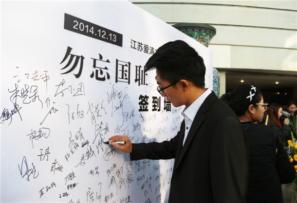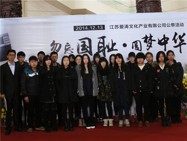 12月13日早上8:40,我院青协组织的十九名志愿者怀着沉痛的心情,来到江苏省爱涛艺术中心,参加了在此举办的“勿忘国耻,圆梦中华”南京大屠杀国家公祭日纪念活动,与其他爱国人士一同悼念死者,缅怀过去,铭记历史。