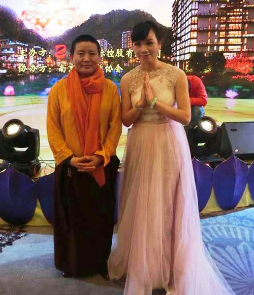 音乐会上,我院邱爱金老师和来自世界各地的艺术家一起登台献艺,为盛典贡献了一场精彩的演出。除了邱老师演唱了《南无阿弥陀佛》和《芦花》两首歌之外,来自尼泊尔的世界著名佛曲咏唱者琼英卓玛演唱了《Namo Ratna Traya Ya》和《Seven line prayer to guru rinpoche》,中国著名的西藏佛曲组合雪莲组合献唱了《圆圈圈》和《阿伊瓦》,以及著名古琴演奏家,中国古琴协会理事葛勇现场演奏了《报父母恩咒》,《高山流水》。另外还有其他丰富的佛教音乐节目。