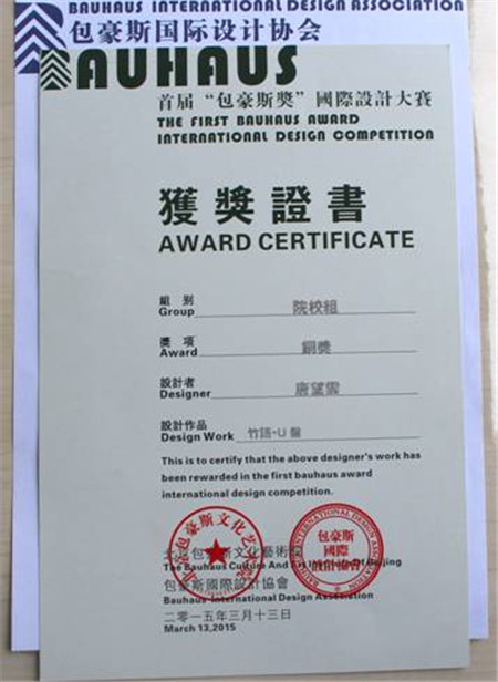 近日,“包豪斯奖”国际设计大赛圆满落下帷幕,小妲己直播 2013级戏剧影视美术设计学生唐望云的作品“竹语•U盘”在首届“包豪斯奖”国际设计大赛中荣获产品造型类铜奖,作品被北京包豪斯设计博物馆永久收藏并收录于《包豪斯设计年鉴》,作者同时被推荐加入包豪斯国际设计协会。