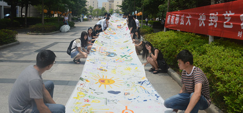 谁说六一儿童节是小朋友的专属?在南京航空航天大学,童心未泯的大学生们就集体创作了百米的涂鸦,当做儿童节礼物。