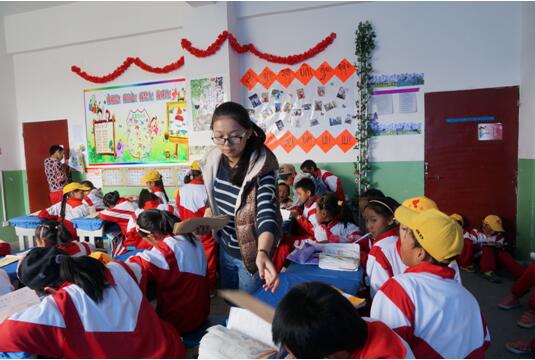 张曦元与孩子们在课堂上