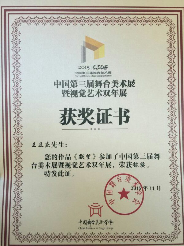 “中国第三届舞台美术展暨视觉艺术双年展”日前落下帷幕,我院教授王立庆、副教授韩博的参展作品分获银奖、铜奖。