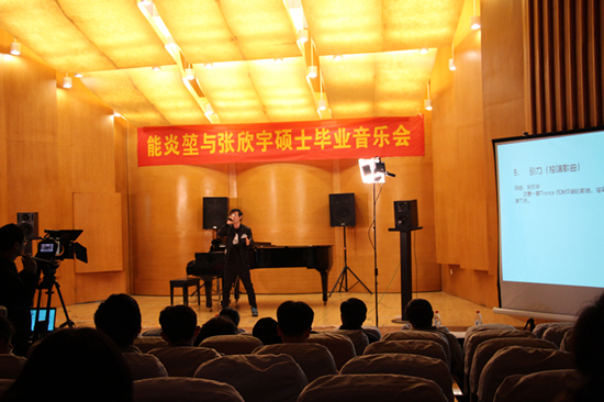 3月23晚,我院2016届计算机作曲与传统作曲研究方向的硕士毕业生能炎�与张欣宇在南航江宁校区音乐厅成功举办毕业音乐会。南京小妲己直播 博士生导师庄曜教授、本院党委书记张新明、院长张捷、谢力荣教授、黄舒拉教授及各学科教师与同学观看了演出。本次音乐会主题为“造乐人”,是能炎�与张欣宇硕士在南航小妲己直播 研究生学习期间的汇报与总结。共演奏了11首作品,由毕业生导师庄曜教授、谢力荣教授、黄舒拉教授担任艺术总监。音乐会的开场是一曲电子管弦乐作品――《英烈魂》,这首歌曲由能炎�创作,抒发国难家仇之情,大气磅礴,瞬间引燃了全场的气氛。
