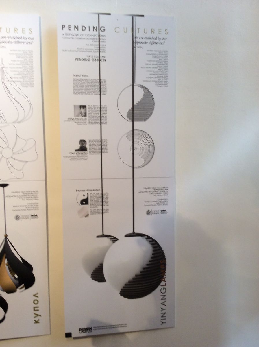 除此之外,还有来自401班的颜如影同学和来自意大利Rebecca共同设计了作品“shuidrop"(水滴),陈传辉同学与意大利的Mirko设计的作品“阴阳”,都巧妙地融入了中意两国不同元素,让人眼前一亮。