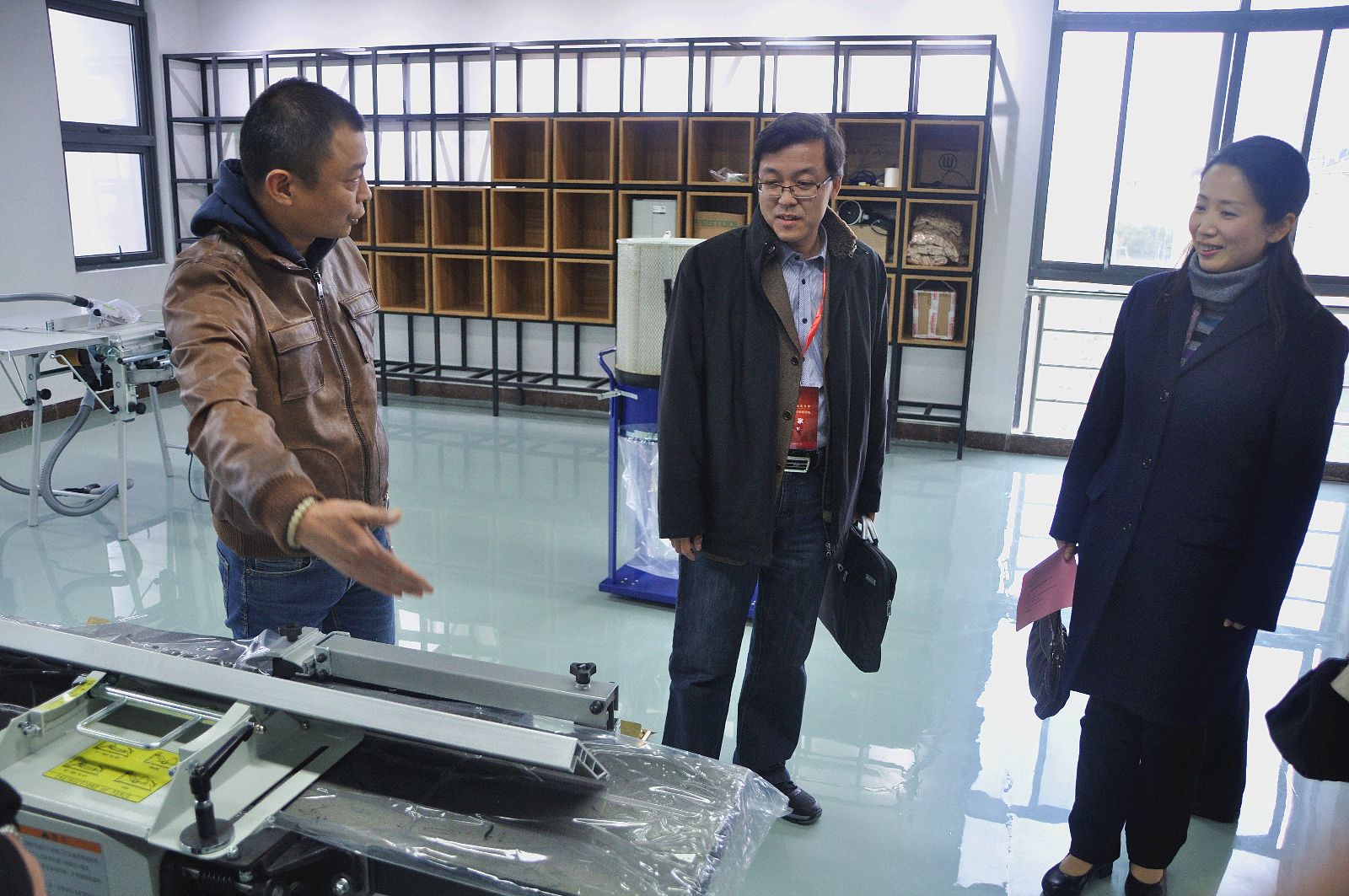 专家组考察创意工场,图为美术系系主任李伟老师向专家组进行介绍