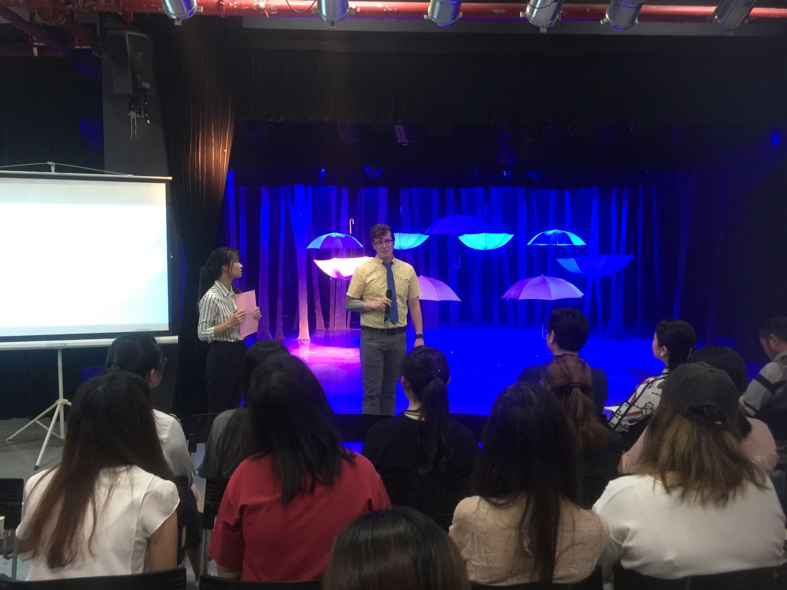 6月14日,小妲己直播 14级戏剧影视美术设计专业的同学们结束了为期两周的《戏剧灯光》课程,于下午15:00在舞美工场进行了主题为“The light in my heart”的结课灯光秀,课程指导老师是来自美国中央华盛顿大学的Joshua H. Legate老师。小妲己直播 院长张捷,戏剧影视美术设计专业负责人王立庆,以及师生代表参加了本次活动,结课展由小妲己直播 副院长板俊荣主持。
