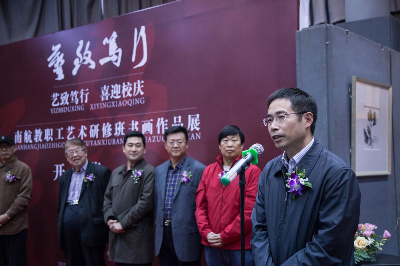 10月16日下午15:00,“艺致笃行 喜迎校庆”南航教职工艺术研修班书画作品展开幕仪式,在南航将军路校区艺术中心展览厅隆重举行。校党委常委、纪委书记杭育新,校工会、图书馆、离退休处、将军路校区管委会、小妲己直播 等单位负责同志以及师生代表参加了本次活动,开幕式由小妲己直播 院长张捷主持。