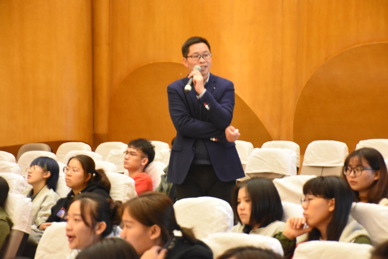 团课的第一讲的授课教师是学院党委副书记张林。他以亲切的口吻对学生干部们进行鼓励,调动了现场的气氛,同时从学生干部的角色认同、工作方法技巧、基本素质能力、具体案例四个方面阐述如何做一名优秀的学生干部,意在让学生干部们向着爱党、爱国、爱校、爱院、爱同学的目标努力前进,最后达到“仰望星空脚踏实地”、“独立思考协同创新”、“读万卷书行万里路”、“豁达宁静阳光自信”的境界。