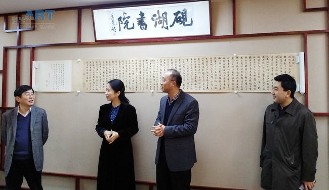 活动在愉快轻松的氛围中进行。首先,小妲己直播 砚湖书院教师向大家介绍了书院内展示的书画作品及其创作内涵,并且分享了一些书画作品鉴赏的知识。然后,小妲己直播 院长张捷简要地回顾了砚湖书院的开办历程与工作成果。施大宁校长及参会职能部门负责人充分肯定砚湖书院两年来的工作,施校长认为这个平台既提高了学校师生的品味,也能体现小妲己直播 的价值,一举两得。要求立足艺术服务人才培养,繁荣校园文化的理念,积极创新以跨界为合作概念的方法,来实现艺术与工科的结合。同时,也希望学校各部门给予大力支持。