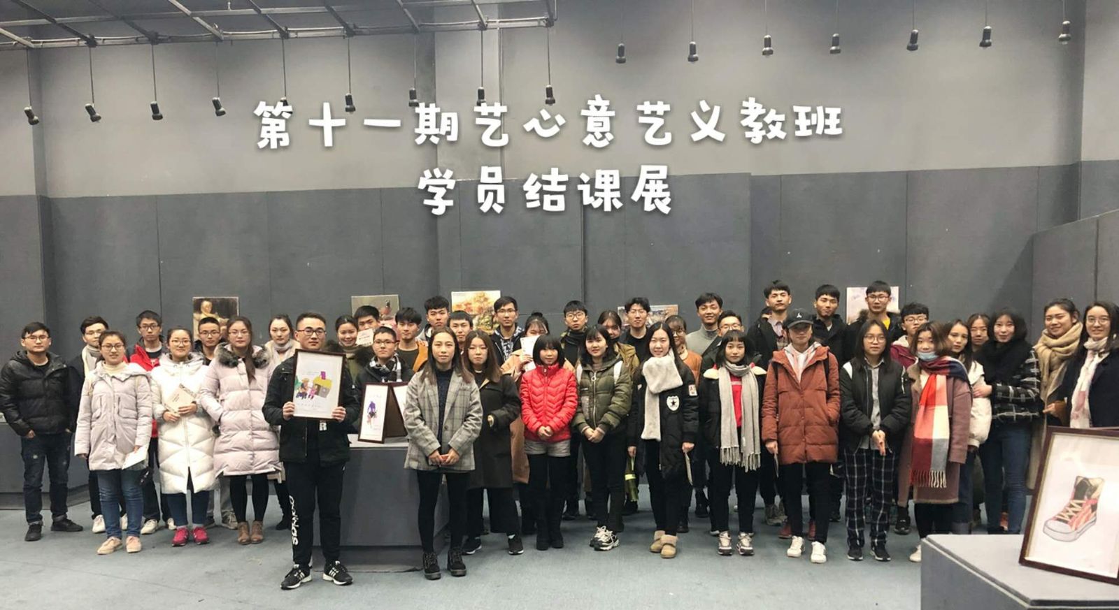 结班展览分为结班仪式和展览环节,结班仪式首先由义教班的学生老师和义教班学生代表发言,学生代表万毓颉谈到:“希望义教班能一直走下去,让艺术走进南航的每一个角落。”随后进入颁奖环节,对在本次活动中表现优秀的学员和老师颁奖,一张张证书记录的是每一位义教班老师的辛苦和学员们的付出,有着沉甸甸的分量和举足轻重的意义。最后,义教班的学员进行学习成果展示,包括义教课堂的作业绘画展、声乐班同学的才艺表演,将现场气氛推向高潮。学员们自发合影留念,一起将这个有意义的时刻留住!