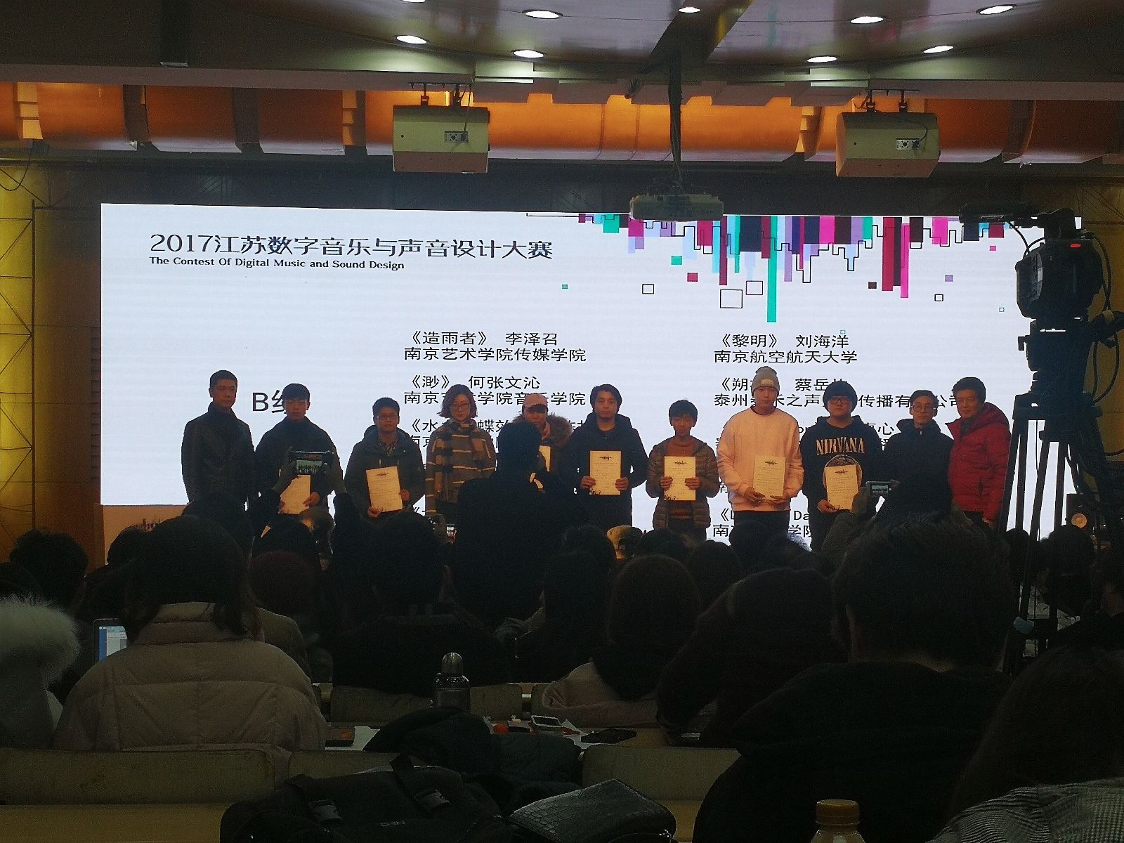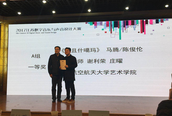 2017年12月21日,2017江苏数字音乐与声音设计大赛在南京小妲己直播 传媒学院圆满落下帷幕。经过激烈角逐,我院谢力荣教授、庄曜教授指导的研究生马腾(已毕业)的作品《阿且什噶玛》荣获A组一等奖;谢力荣教授指导的研究生刘海洋(在读)的作品《黎明》获得B组优秀作品奖。