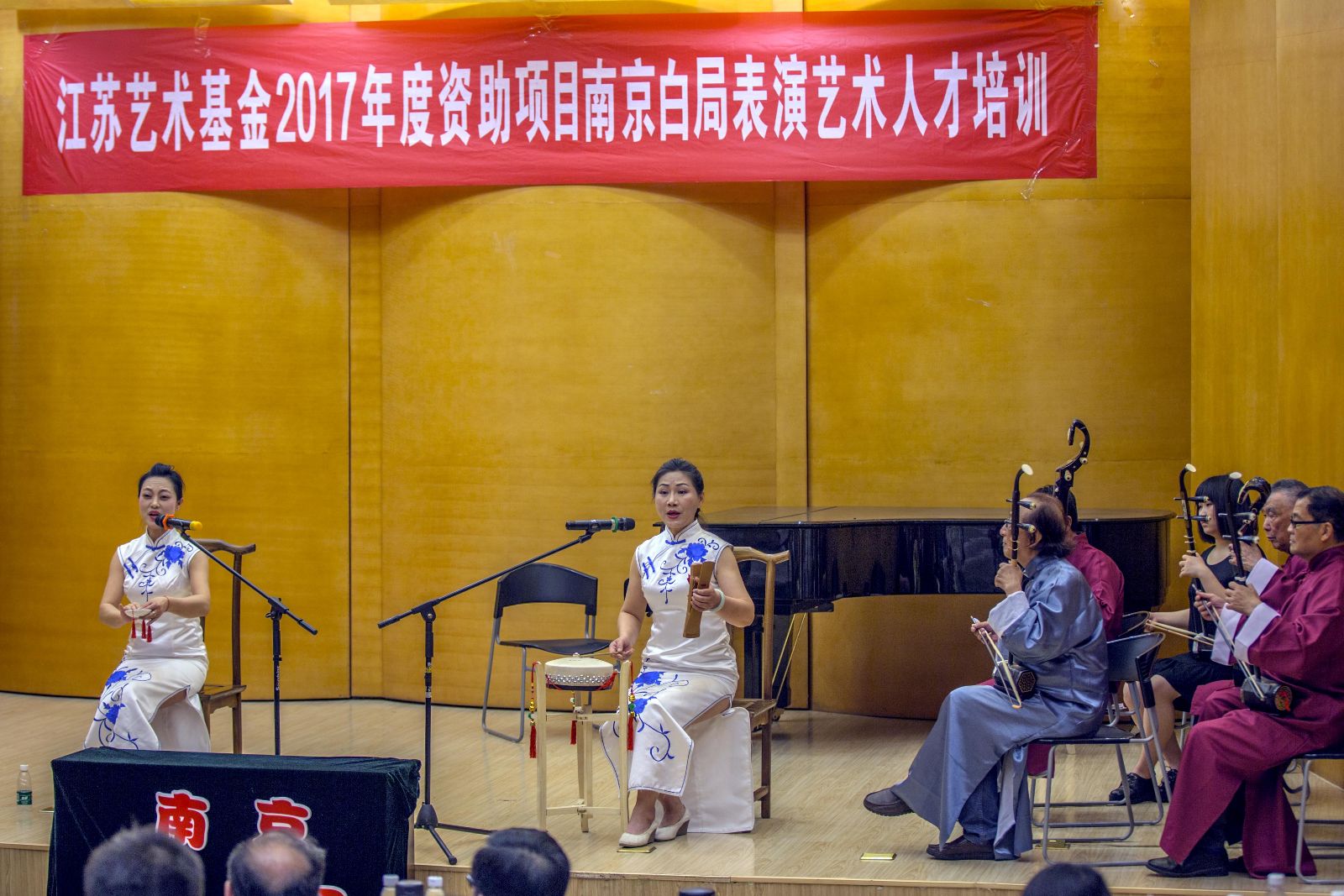 经过为期半年多的集中培训和分组辅导,南京白局表演艺术人才培训已完成所有培训任务,进入结项验收阶段,本次汇报音乐会是该项目结项的内容之一。为认真负责、高质量地做好此次培训项目,项目负责人板俊荣教授全程参与了培训工作,在理论讲授的同时,严格把控了集中培训阶段的课程进程和培训内容。项目邀请了马敬华、周慧琴、黄玲玲、高小玲四位省级传承人作为培训教师,她们四位曾在上世纪60-90年代将白局的舞台表演及歌唱艺术推向了高峰。接受培训的学员来自南京白局市级、区级传承人和白局爱好者,以及我校小妲己直播 音乐学方向的研究生,江苏省第二师范学院和南京晓庄学院的音乐学专业本科生,总计26名。培训期间学习了南京白局所有经典唱段和表演技艺,在高小玲老师的努力下,恢复了几近绝响的经典剧目《上寿全词》各唱段。