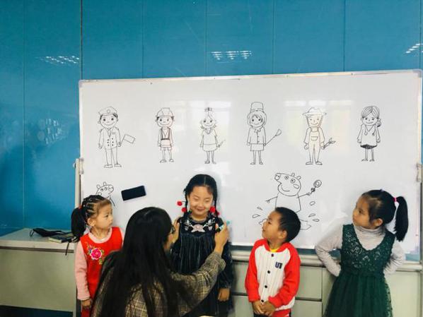 最后,史瑞瑞同学带着小朋友“玩游戏猜职业”,几个小朋友围在一起,通过动作表演猜出职业。临近中午,本次志愿服务活动圆满结束,家长们对这次活动赞不绝口。志愿者史瑞瑞说,与小朋友们在一起,给他们介绍各类职业,对于我自己也是一种对未来职业的思考,他们的童真也感染着我,让我找回我曾经的初心和梦想。(胡方定/文)