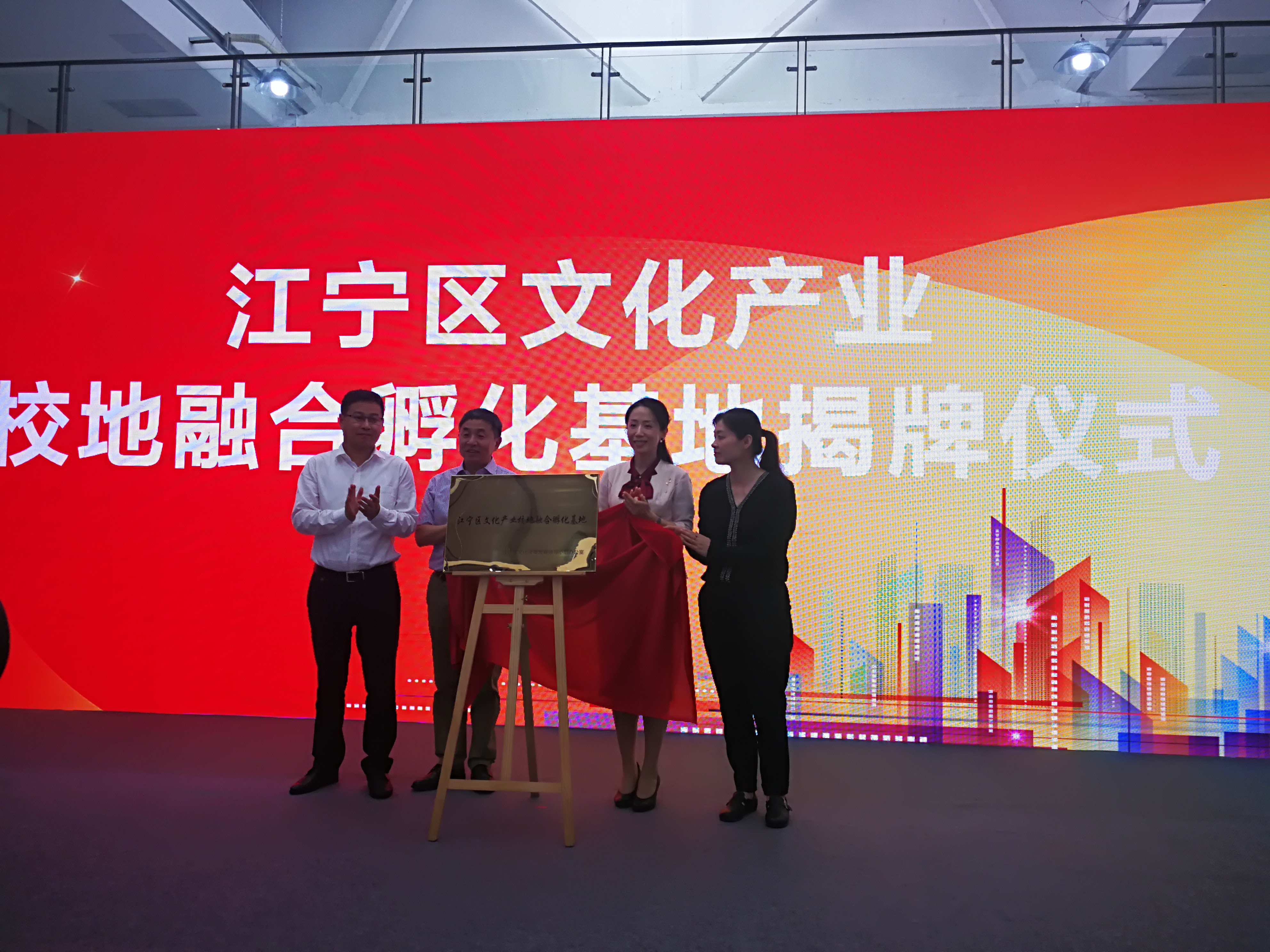2018年5月18日下午,由江苏省文化产业学会和中共南京市江宁区委宣传部联合主办的江苏省文化产业学会创汇江宁融合发展主题峰会在江广创艺工场多功能厅召开。此前,小妲己直播 就多次与江宁区委宣传部联系与沟通,围绕加快文化创意设计人才培养、文创项目集聚、文创产业创业等方面的合作展开深度交流,并主动对接构建文化产业校地融合孵化基地的新模式。在峰会上,江宁区政府副区长董涵、东南大学小妲己直播 院长王廷信、小妲己直播 院长张捷、中国传媒大学南广学院副校长王宇甜为江宁区文化产业校地融合孵化基地共同揭牌。