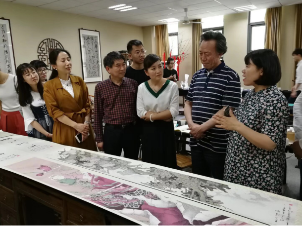 两个小时的交流,崔先生带领学院师生走近他的花鸟画世界,聆听他与花鸟的对话。在开始交流之前,崔先生首先向大家展示了他的三幅花鸟画作品,纪大年先生曾评论:“崔家花鸟画核心是大花鸟精神,体现了一个‘大’字。”看到崔先生作品时对“大”的理解不言而喻,其花鸟画不仅篇幅大,而且题材大,内涵丰富。其极具冲击力的构图、厚重的造型、凝重的线条、瑰丽的色彩不仅让大家一饱眼福,同时也获得了艺术上的审美享受。