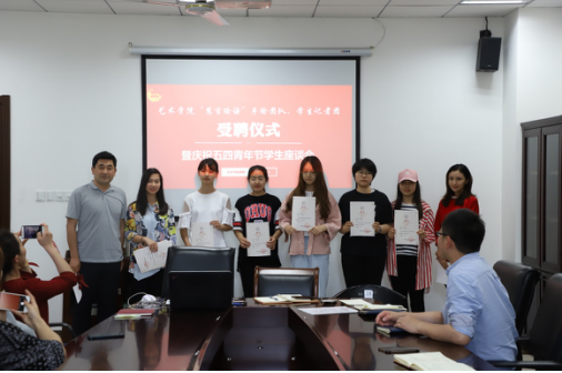 随后,学院邀请李倩岚老师和陈慧云老师担任两支学生团队的指导老师,并由学院党委书记高小泽老师为两位老师颁发聘书,高书记和两位指导老师也共同为两支团队新成员颁发聘书并合影留念。一张张笑脸上洋溢的是学生们对专业的热爱,更是对在团队中实现自身价值的满足与幸福。学生记者团付裕同学说:没想到,自己在青年节即将来临之际收到了这样一份沉甸甸的礼物,这不同于以往的节日祝福,这更像是一份责任,光荣也艰巨。