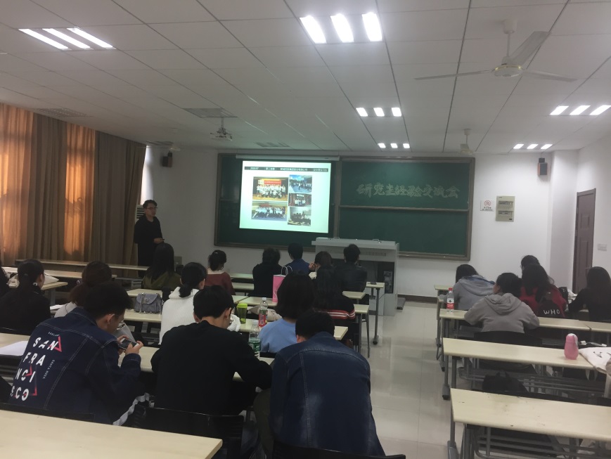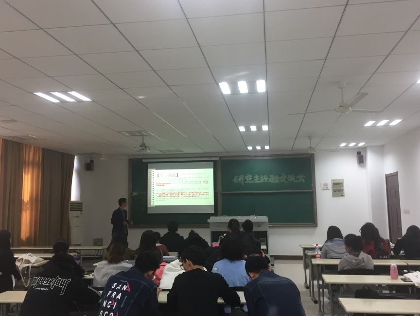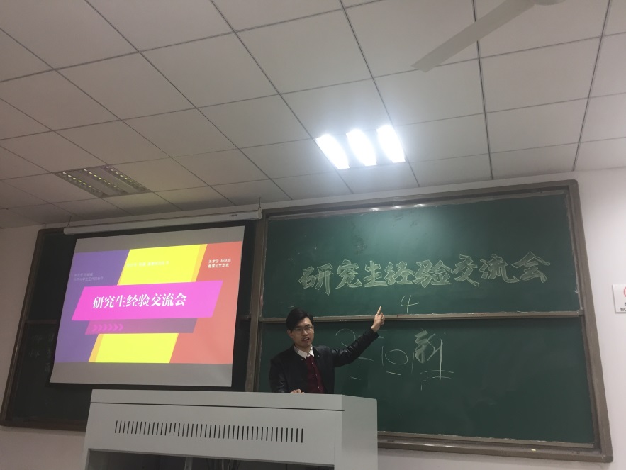 张通同学从研究生的实习实践方面分享了自己经验,告诉同学们在注重学习与科研的同时实习经历也非常重要,他把握研究生的每一个假期和学习空余时间参与实习实践,积累了丰富的实践经验,得到了多家单位的认可和青睐;陈维维同学从课题申报方面讲述了自己的方法技巧,作为学院的研究生会主席,在完成各类学生工作的同时,更加严格要求自己,发表了多篇论文,得到了老师们的肯定;杨林顺同学从如何写好一篇论文方面提出了自己的观点,毫无保留的与同学们畅谈论文写作方法,同学们都听的津津有味,受益匪浅。