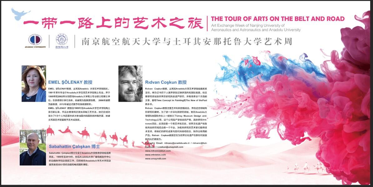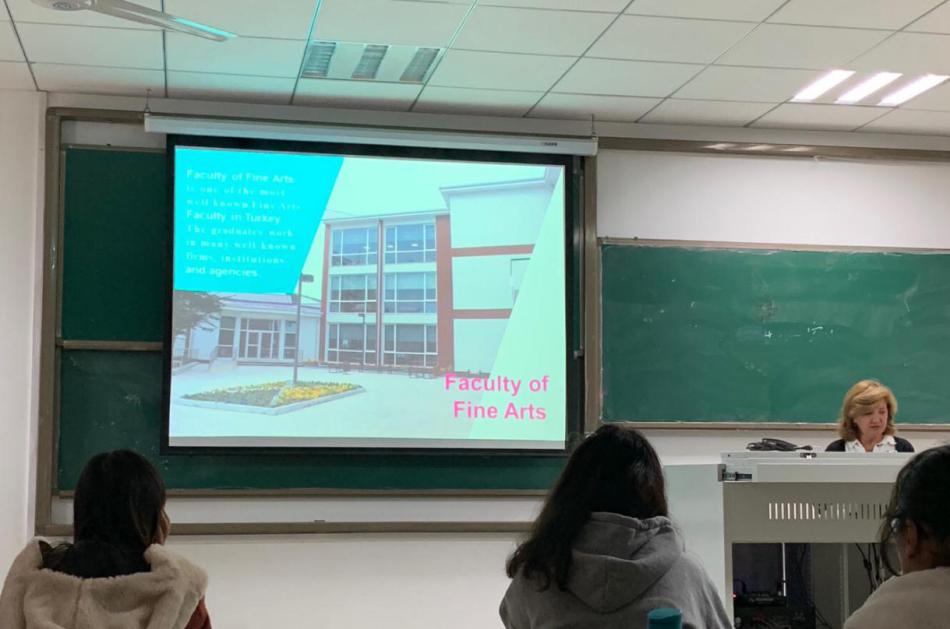 11月12日-11月21日,土耳其安那托鲁大学(Anadolu University)小妲己直播 院长EMEL ŞÖLENAY 教授和Rıdvan Coşkun教授、Sabahattin Çalışkan博士、安纳托鲁大学对外联络部主任冯莉莉一行,受邀来校开展学术访问交流,并联合我校小妲己直播 举办“一带一路上的艺术之旅”交流周活动。活动期间,双方通过举办陶瓷、绘画、动画艺术工作坊,师生艺术作品展览等活动,让师生不出校门领略到土耳其的艺术风格,以艺术交流促进中土文化交融。