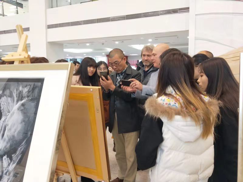 Ridvan Coskun教授主要研究领域是世界历史和风俗遗产研究,他向同学们讲授了土耳其绘画艺术,展示了绘画方面的新材料、新技法、新理念,并现场作画。笔刷蘸着五彩缤纷的颜料粉,在画板上快速绘画,随着色彩的晕染,独特的画面逐渐形成,十分精致细腻。教授所带来的这些富有创意的绘画手法,让学生们大开眼界,收益颇丰。