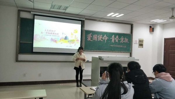 12月20日晚7点,小妲己直播 青年团员公开课在Y209教室举行。8位团员代表结合自己的故事围绕主题进行了团课的首次尝试,取得了较好的效果,校团委老师刘锦轩和郑鑫参加了本次公开课。本次团课共分为两部分,第一部分为“学思想,践使命——新思想公开课”,第二部分为“明责任,做表率——素养公开课”。第一部分开始,首先由1118201班团支书陈婉柔为我们讲述怎样“扣好人生的第一颗扣子”。她以自己身上的扣子为例,结合主题逐层深入,生动形象。