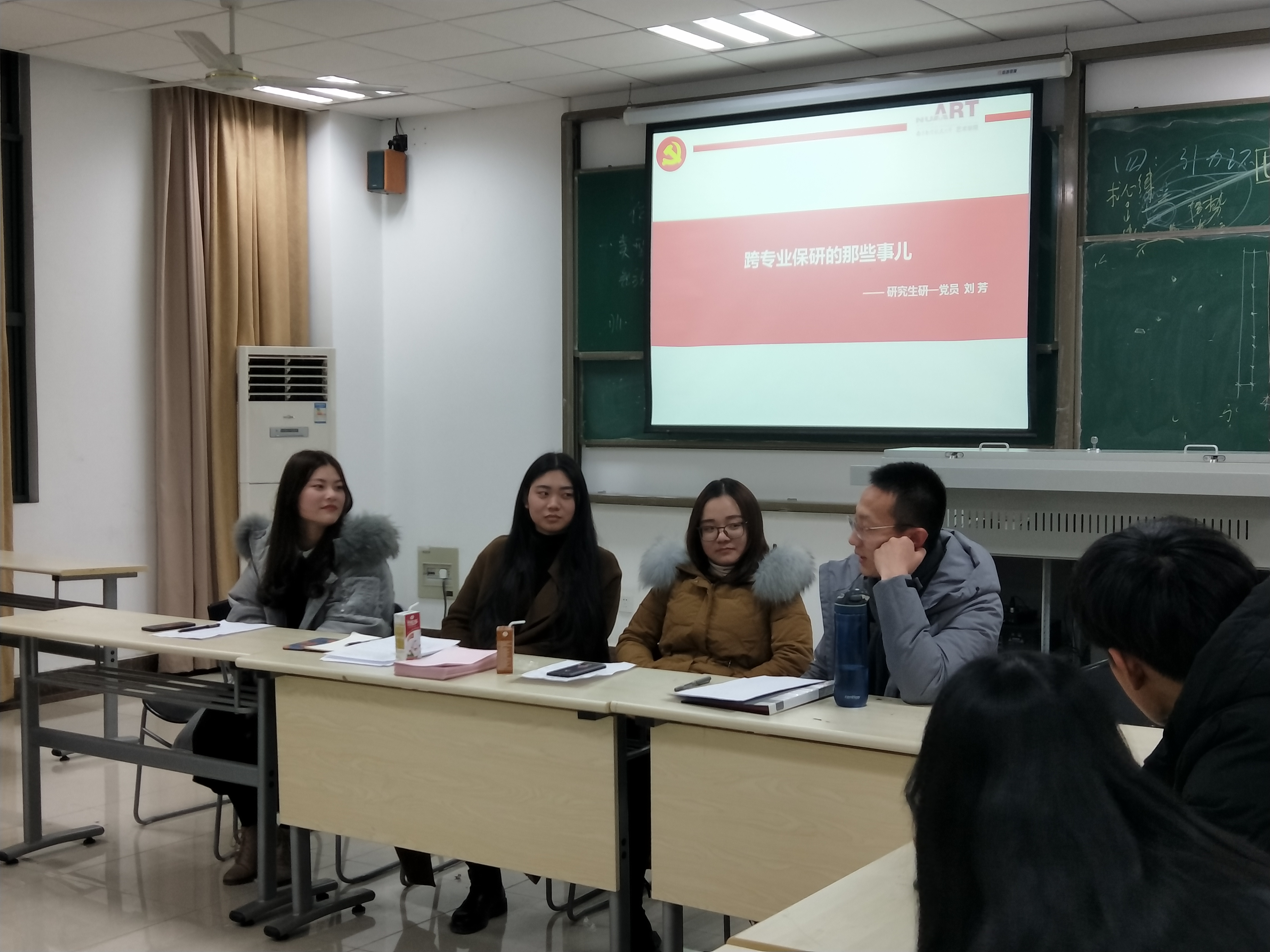 会议后半场研究生研一党员刘芳向同学们介绍了他跨专业保研的经验,又和同学们分享了他对于“坚定文化自信·勇当时代新人”的践行。无论是在“铭记历史,开创未来”参观侵华日军南京大屠杀遇难同胞纪念馆,还是在雨花台纪念碑敬献花篮活动上,他参与每一项活动都会积极地去发挥作用,通过实际行动努力成为“四讲四有”好党员。随后本科生联合党入党积极分子曹佳敏向同学们讲述了“从手绘全家福到艺致文创工作室”的故事,其中的曲折经历,重重障碍也让同学们看到了成功的不易。“全家福是让人感到最温暖、最贴心的词语,我们关注社会中最需要关注的群体,用手绘全家福问他们带来快乐和幸福,这个也是我们当代大学生的一份责任与担当。