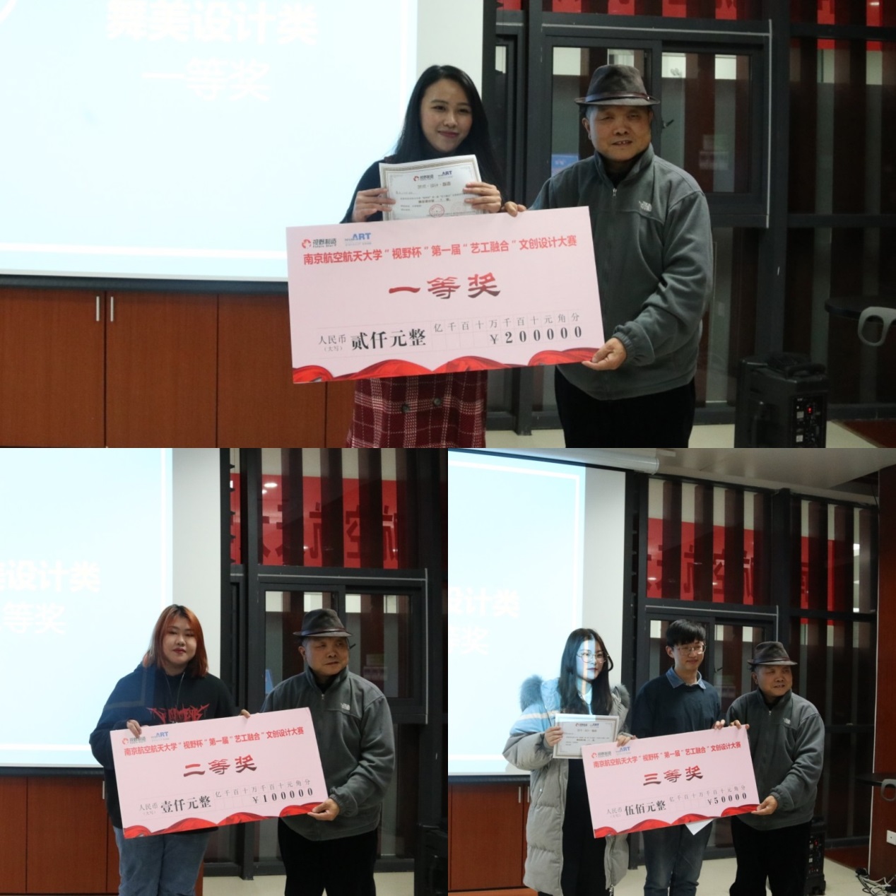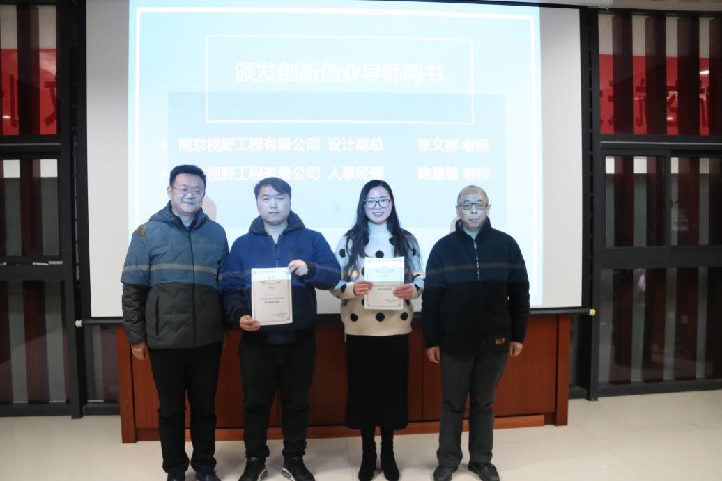 本次比赛的顺利举办也源于各专业老师的指导和南京视野工程有限公司专家们一直以来的关心,借此机会,在活动现场也为一等奖的指导老师颁发优秀指导教师荣誉证书,并为南京视野工程有限公司设计副总张文彬、人事经理陈慧敏颁发创新创业导师的聘书,希望在未来他们能更多的参与到学生专业比赛的指导当中,服务我校学生“艺工融合”能力的全面提升。
