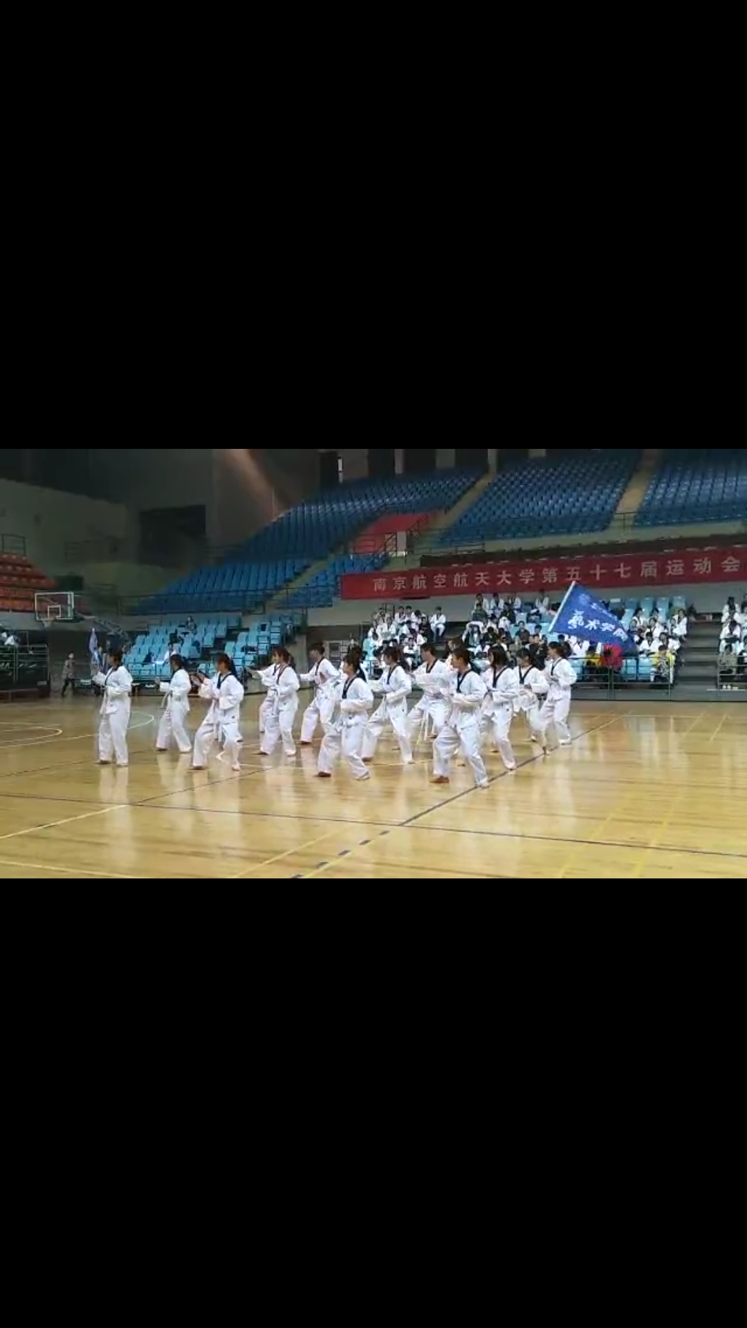 在比赛上场之前,辅导员李爽为排练的队员们带来了南航特制饮用矿泉水给参赛队员们加油鼓劲儿,一直陪着学生们到比赛的结束。学长学姐像平时一样鼓励大家,一直跟队员们说不要紧张,放开了打,要有节奏。尽管在场上只有十六个人,尽管大部分都是女生,但是我们仍然对第一有着一种追求,最终,我们成功了!