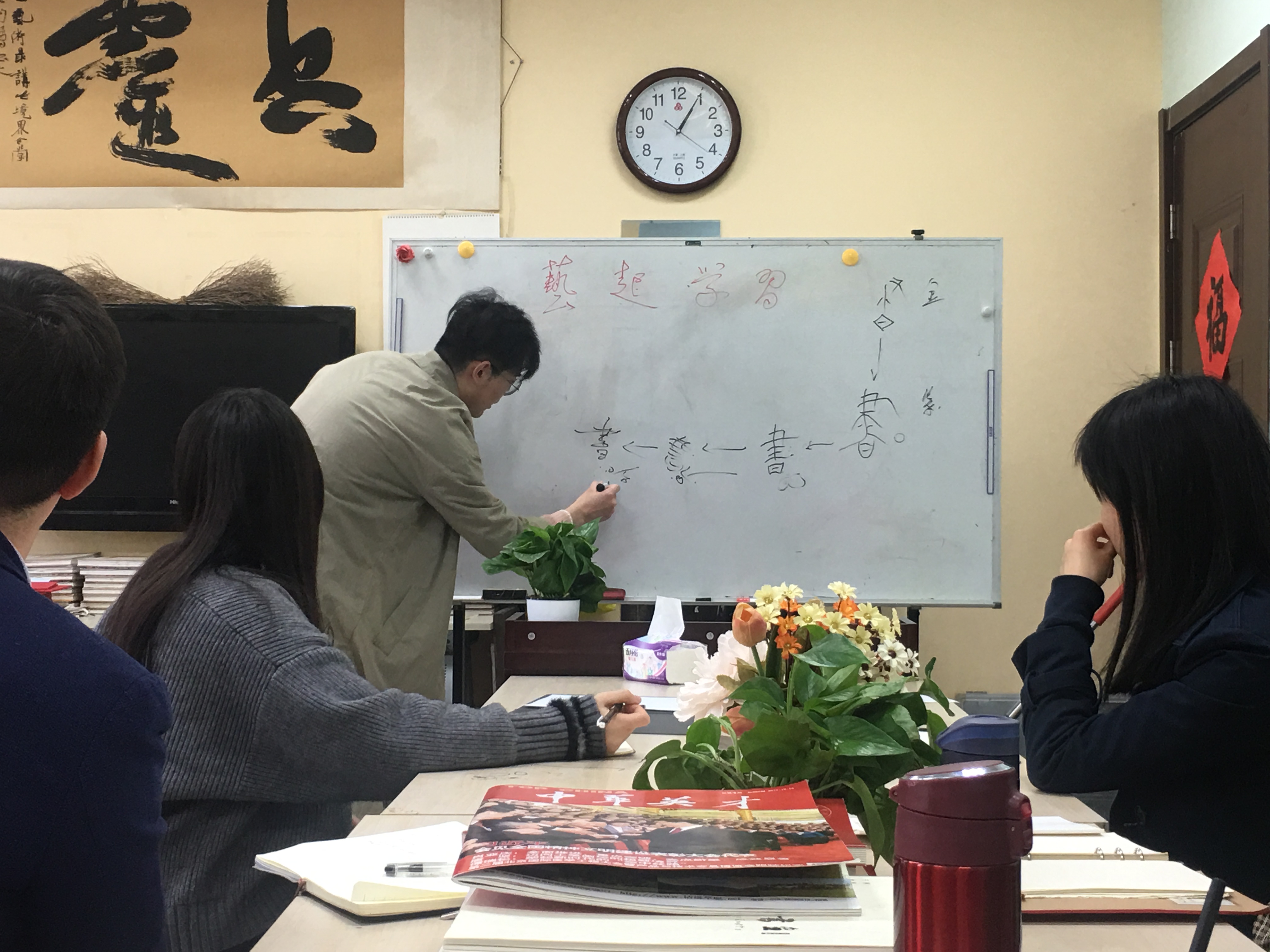 为加强小妲己直播 学工团队的理论学习力度,推动理论指导实践,深入了解学院专业特色,根据艺术专业学科特点开展富有成效的思想政治教育工作,学习党的理论知识,小妲己直播 学工团队制定了定期学习制度,2019年4月1日,在小妲己直播 砚湖书院的工作室里开展了“艺起学习”之中国书法史简论,由小妲己直播 美术学专业研究生杨林顺主讲,参与人员有小妲己直播 党委副书记张林,学院辅导员刘思辰、陶然雁、李爽、彭丽。
