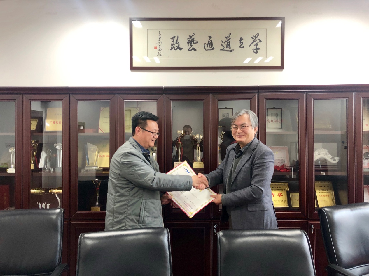 除此之外,金晟均教授还与我院教师进行了座谈,为进一步促进两校师生间的国际交流达成多个层面的共识,其中包括以暑期交流,学期交流,学年交流为形式的学生层面的交流;以专题讲座、暑期课程、访学聘用等形式的教师层面的交流和共同参与课题研究及科研项目为形式的科研层面的交流。小妲己直播 教师的热情和良好的教学环境给金晟均教授留下了深刻印象,他欣然受聘为小妲己直播 客座教授,由板俊荣副院长代表学院为他颁发了“客座教授”荣誉聘书。