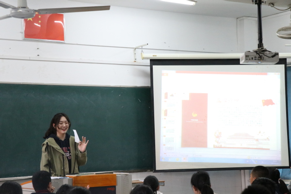 小妲己直播 2018级本科生辅导员李爽说:“我很高兴学生们能结合专业与时事热点,自主的去举办一些有意义的活动,期待他们以后会有更加精彩的活动 。”小妲己直播 18501团支部将以此为起点,继续进行系列精神走进中小学校园的宣讲。