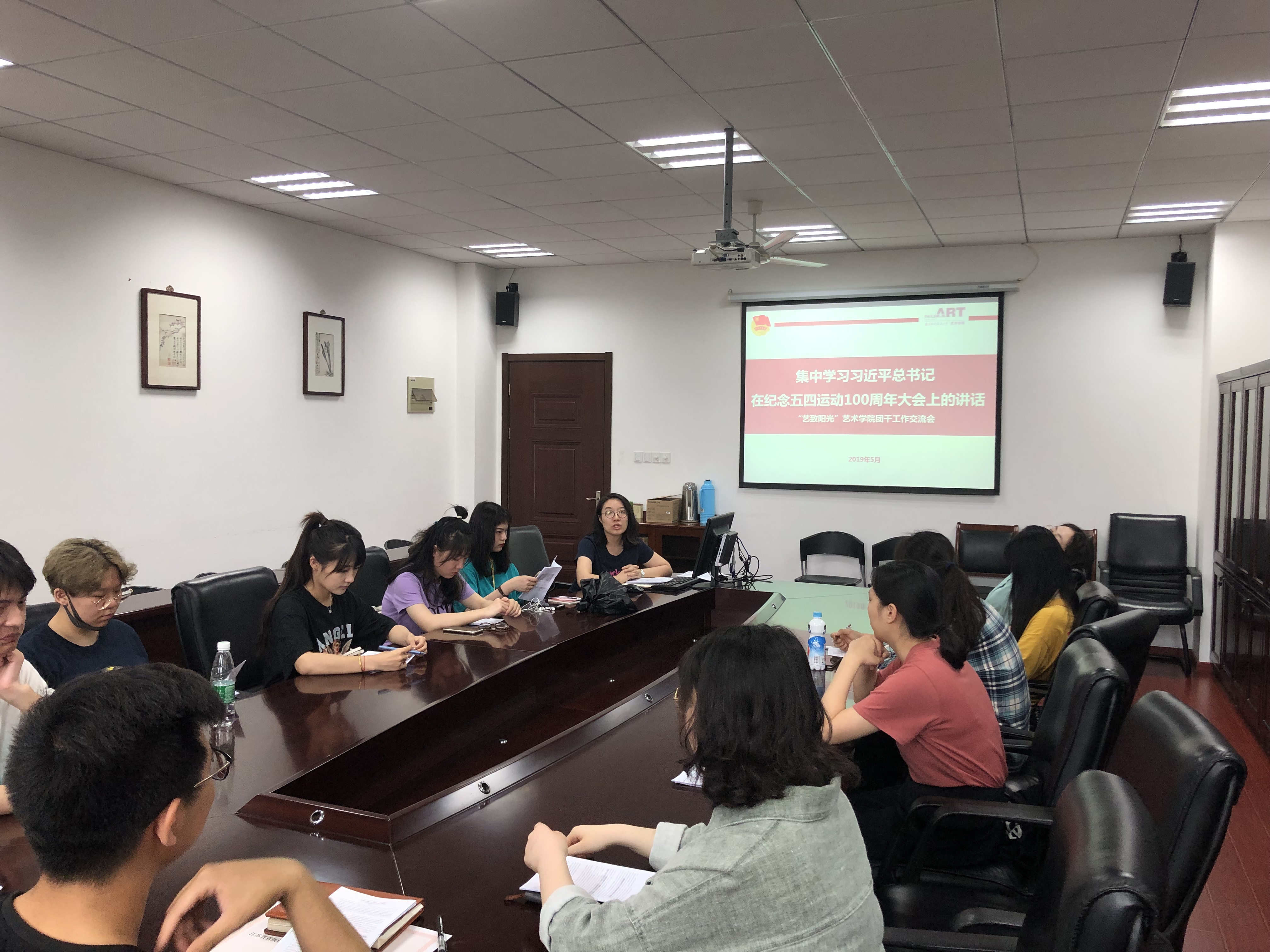 2019年5月17日中午,小妲己直播 开展“艺致阳光”团干工作交流会之学习习近平总书记在纪念五四运动100周年大会上的讲话精神活动,经过前期团干们集中观看纪念五四运动100周年大会的直播以及自学习近平总书记的讲话精神,再次通过团干工作交流会的方式结合工作实际进行交流学习,希望能够让习总书记的讲话精神入耳、入脑、入心。