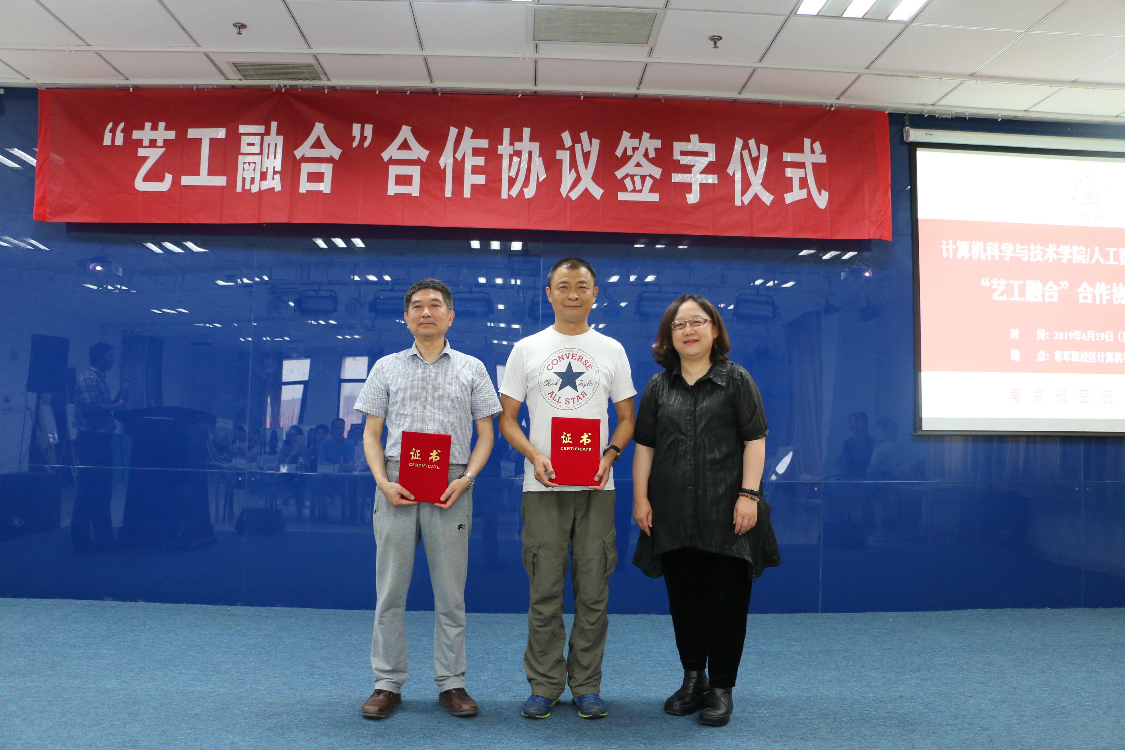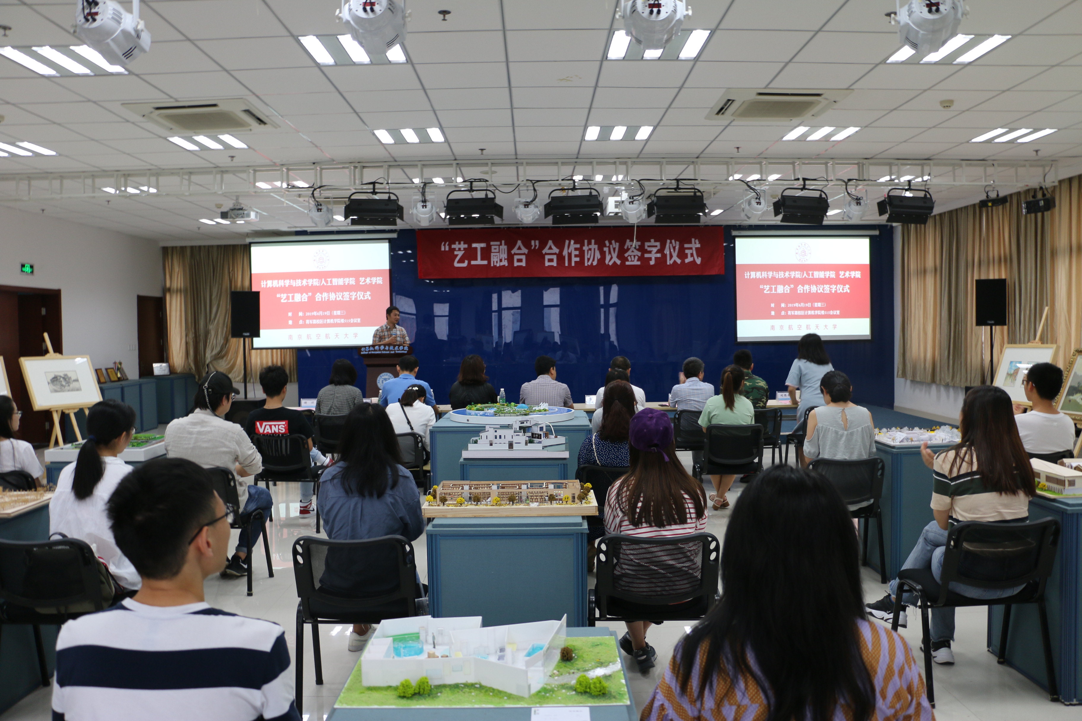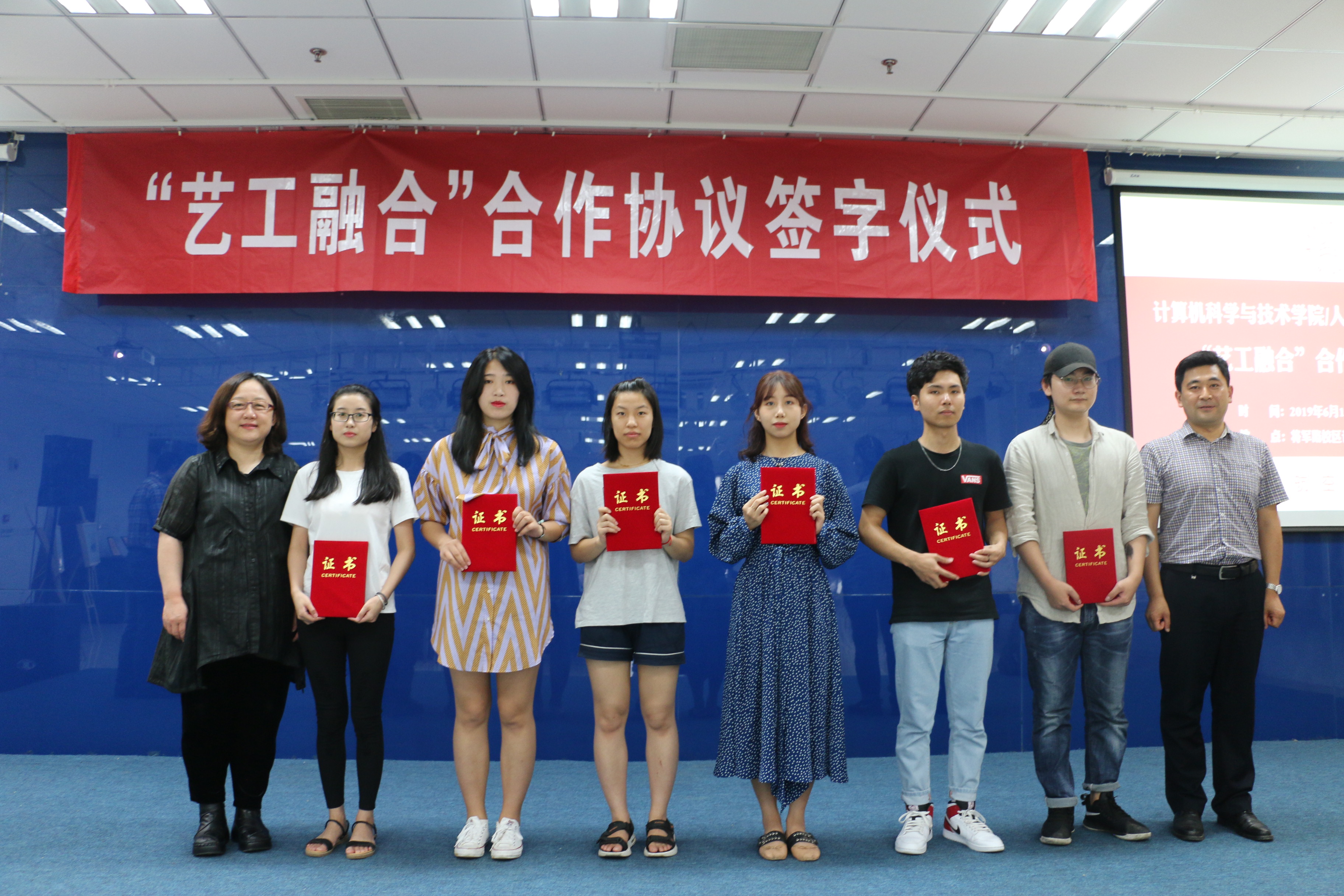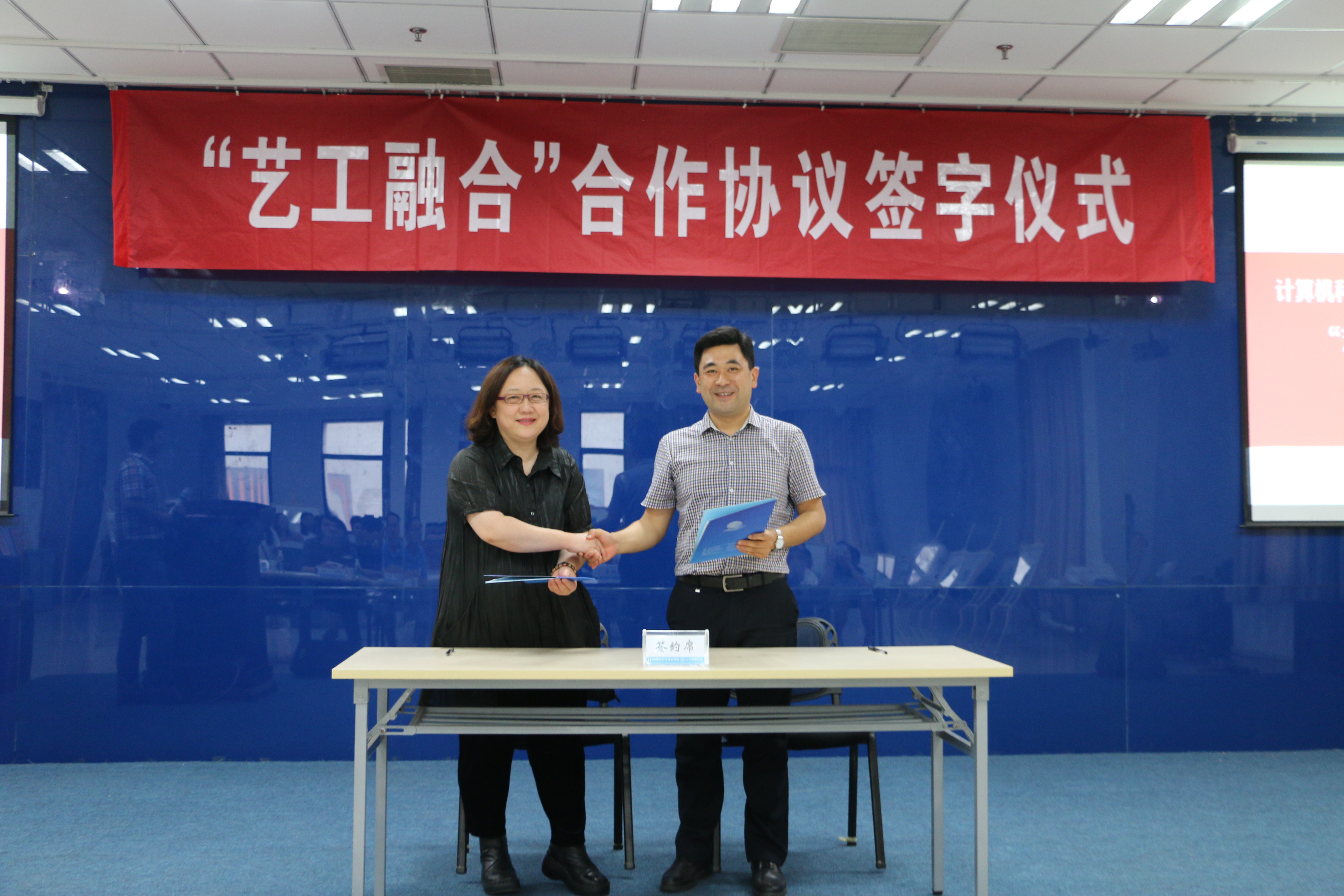 6月19日上午,计算机学院与技术学院/人工智能学院与小妲己直播 “艺工融合”合作协议签字仪式在计算机学院楼515会议室隆重举行。计算机科学与技术学院/人工智能学院党委书记刘健荣、涂华伟副教授;小妲己直播 党委书记高小泽、美术系系主任/设计学学科负责人李伟教授、小妲己直播 美术学学科负责人熊炜教授;两个学院党政办主任、团委书记等三十余位师生出席会议。会议由计算机学院党政办主任谢健主持。