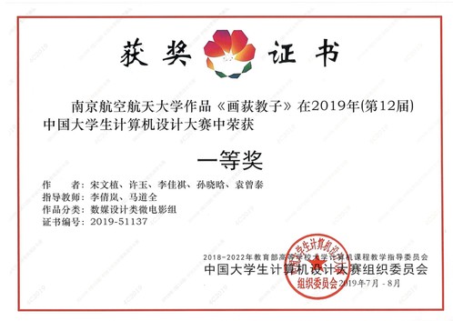 本次大赛共有来自全国29个省市、自治区,全国246所高校的391件数媒微电影类作品入围决赛,其中纪录片作品206件、数字短片作品107件、微电影作品78件;参与大赛的师生多达1700余人。数媒微电影类作品一等奖的比例只有不到7%。来自小妲己直播 的《画荻教子》是南航学子第一次参与中国大学生计算机设计大赛的数媒微电影作品,该作品在省赛中已获得特等奖的最高奖项,在全国赛中又从一众高校中脱颖而出,获得一等奖的佳绩。