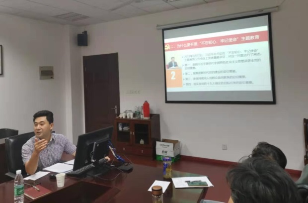 高小泽围绕中国共产党人的初心和使命就是为“中国人民谋幸福、为中华民族谋复兴”,对主题教育开展的背景、意义、根本任务、总体要求、具体目标做了具体分析,全面充分的传达了学校“不忘初心、牢记使命”主题教育工作动员大会精神,对主题教育领导小组组长、校党委书记郑永安的讲话精神,工信部党组第二批主题教育巡回指导组组长、部机关党委副书记徐宝峰的讲话精神、以及学校关于主题教育部署落实的各项任务要求进行了解读。他对贯彻落实开展好主题教育提出四点要求,一是要提高政治站位,强化党员意识,做到“两个维护”、树牢“四个意识”、坚定“四个自信”;二是要坚持统筹兼顾,围绕党员思想实际、围绕学院工作特点、围绕改革发展需要,增强主题教育的实践性、针对性;三是要突出问题导向,着力解决党员意识和作用发挥方面的问题,着力解决基层党建薄弱环节、着力解决制约发展的制度和文化瓶颈;四是要强化发展追求,通过学习教育汇聚起的坚定理想信念、干事创业热情、风清气正氛围为学院发展提供政治、思想和组织保障。
