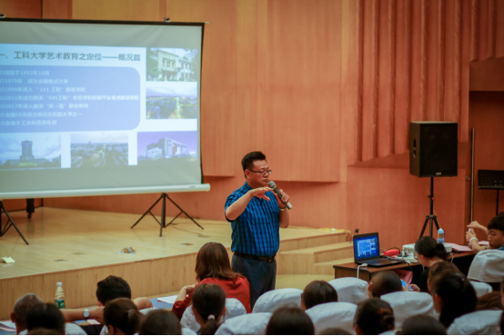 开学典礼正式开始后,首先是由小妲己直播 副院长板俊荣介绍学院情况。他提出,小妲己直播 是工科优势高校艺术教育的一条发展路径,以此为基点,他从整体上介绍了南航小妲己直播 的发展历史、院训以及定位;以专业、学科、科研三个方向讲述了学院专业建设互融与互补、专业与学科一体化建设的发展格局,并具体介绍了学院四个本科专业的情况特点;从基础条件设施、合作平台建设、师资队伍建设三个方面展现了学院给予学生的支持与培养;提出学院在人才培养计划中分为专业艺术人才和公共艺术教育,同时学院积极开展国际交流,和多所国际院校建立稳定合作关系。