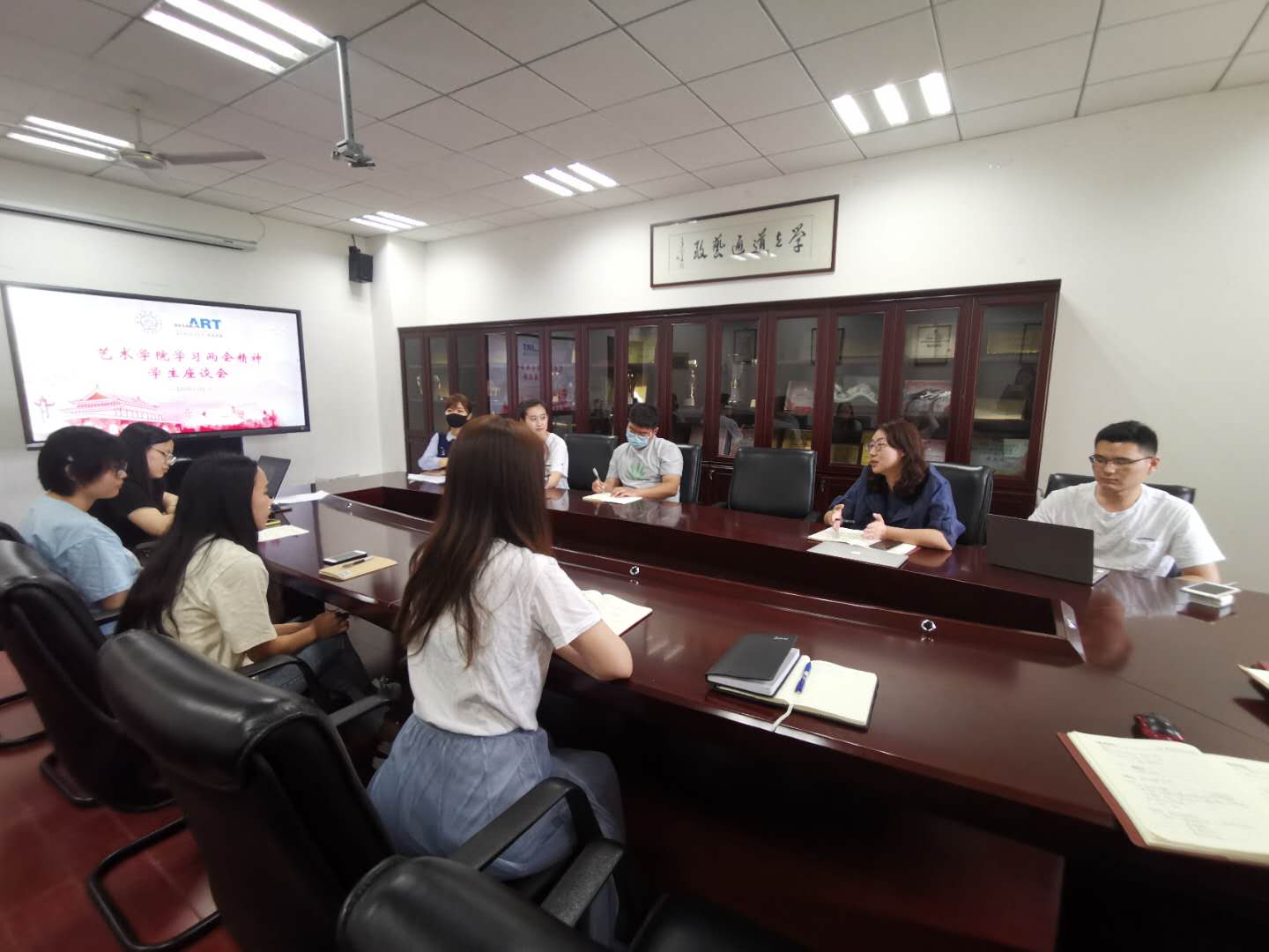 在学院举行的学生代表座谈会上,辅导员罗莉婷老师围绕两会知识进行了讲解,与会学生代表围绕两会精神,深入交流各自的学习体会和思考。学院党委副书记王宇宁鼓励同学们关心时政,认真学习,同时做好个人规划,充分发挥个人价值,担当时代重任。