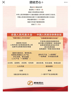 学院结合线下学习和云端学习,全面学习贯彻两会精神。学生将专业特色和学习两会相融合,图解两会知识,通过公众号发布推送,营造了学习两会的良好氛围。