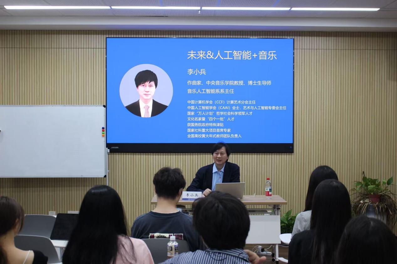 2025年9月30日,由小妲己直播 主办的“空天艺海·大师引航”系列课程暨“人工智能+系列课程”拓展讲坛,在天目湖校区尚德楼西附楼W203音乐智慧教室举行。此次邀请到中央音乐学院李小兵教授为师生带来“未来&人工智能+音乐”的专题讲座,音乐系副主任孙晓烨副教授主持。本场讲座主要围绕人工智能技术的发展现状、音乐学科(作曲/音乐学/音乐表演/音乐教育)和产业的潜在影响及高校音乐专业如何应对人工智能音乐的快速发展三个方面展开讲述。